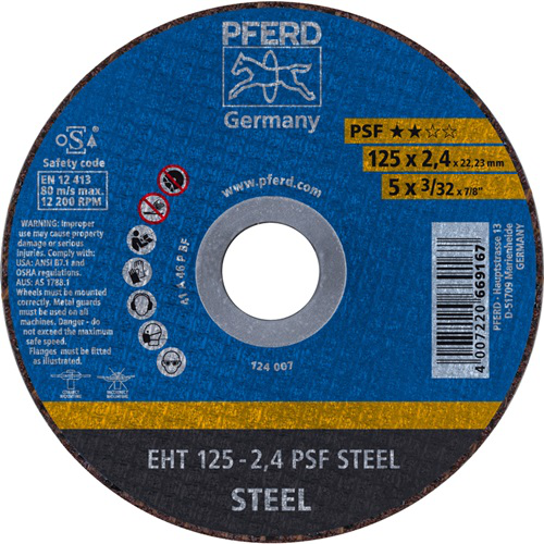 Cutting disc PSF STEEL dm125x2.4mm straight steel bore 22.23 mm PFERD