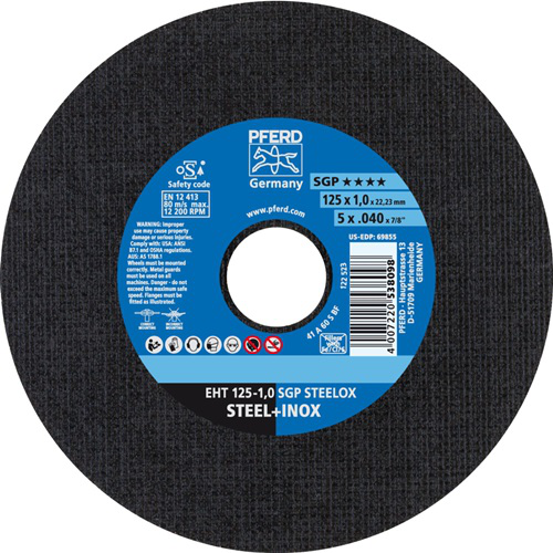 Cutting disc SGP STEELOX dm125x1mm straight stainless steel bore 22.23 mm PFERD