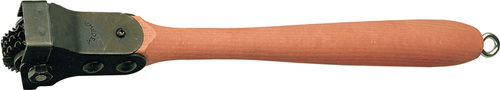 stabiles Griffstück aus Edelholz für festes, bequemes und beidhändiges Zupacken · Stütznasen zur Erleichterung, gleichmäßiges Anlegen der Rolle an die Schleifscheibe · zur Vereinfachung seitlicher Bewegungen, um die gesamte Breite der Schleifscheibe abzurichten · Schutzblech zur Verhinderung sprühender Funken gegen Gesicht und HändeWeitere technische Eigenschaften: