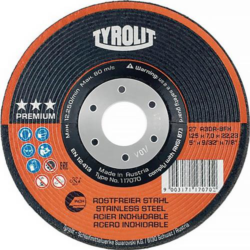 Werkzeug & Technik Oberflächentechnik Schruppscheibe PREMIUM D125xS7mmKörnung 30 gekröpft Bohrung 22,23 mm TYROLIT